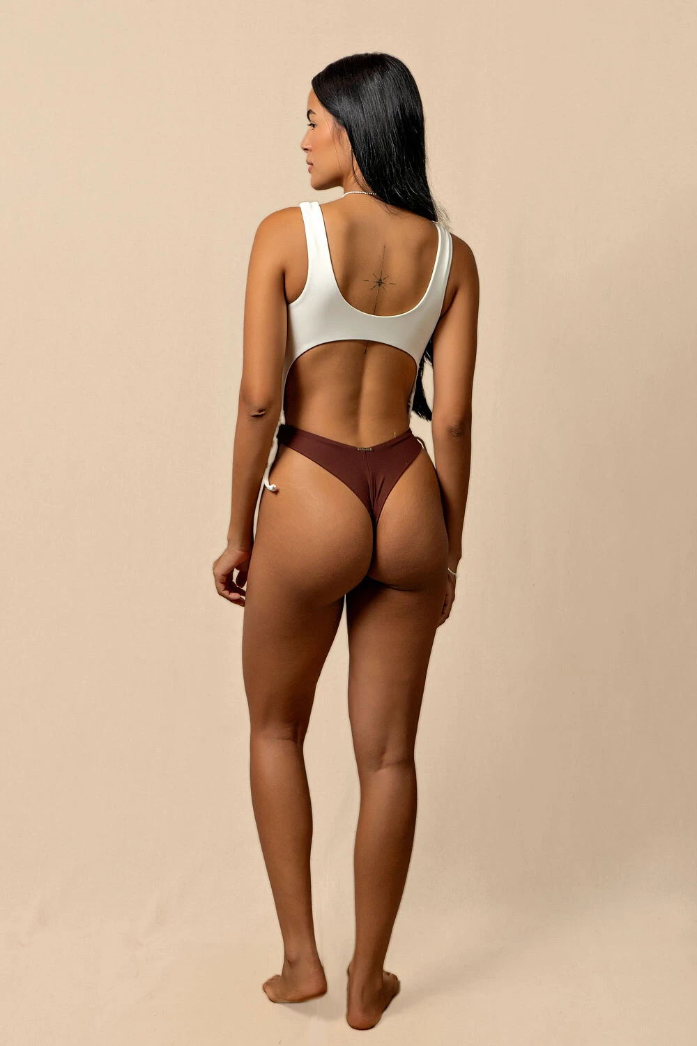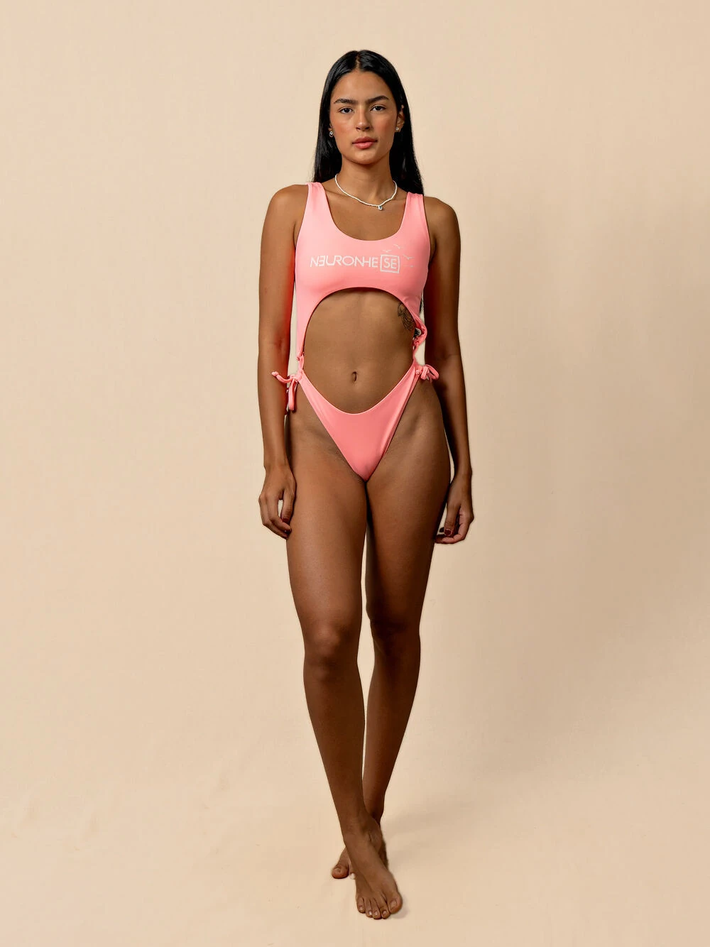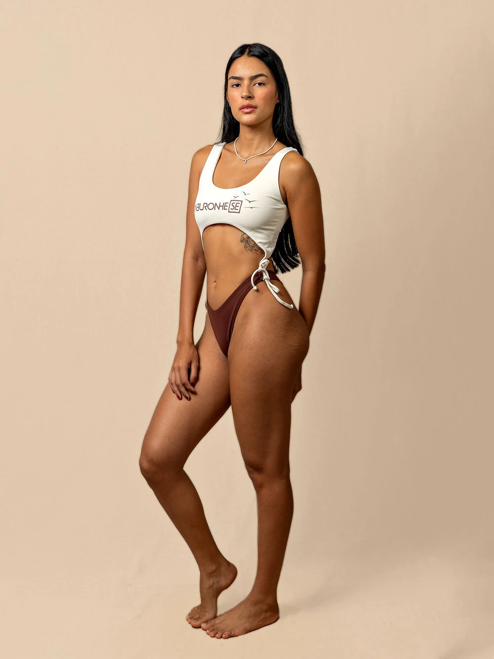 Body dupla face em poliamida e elastano, cavado, com alças, lateral recortada, sem fecho nas pernas e sem bojo