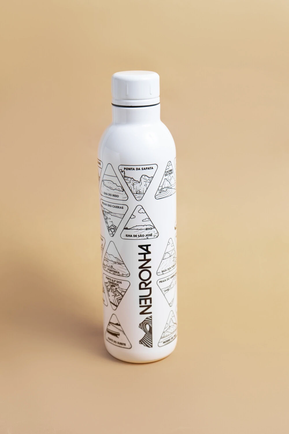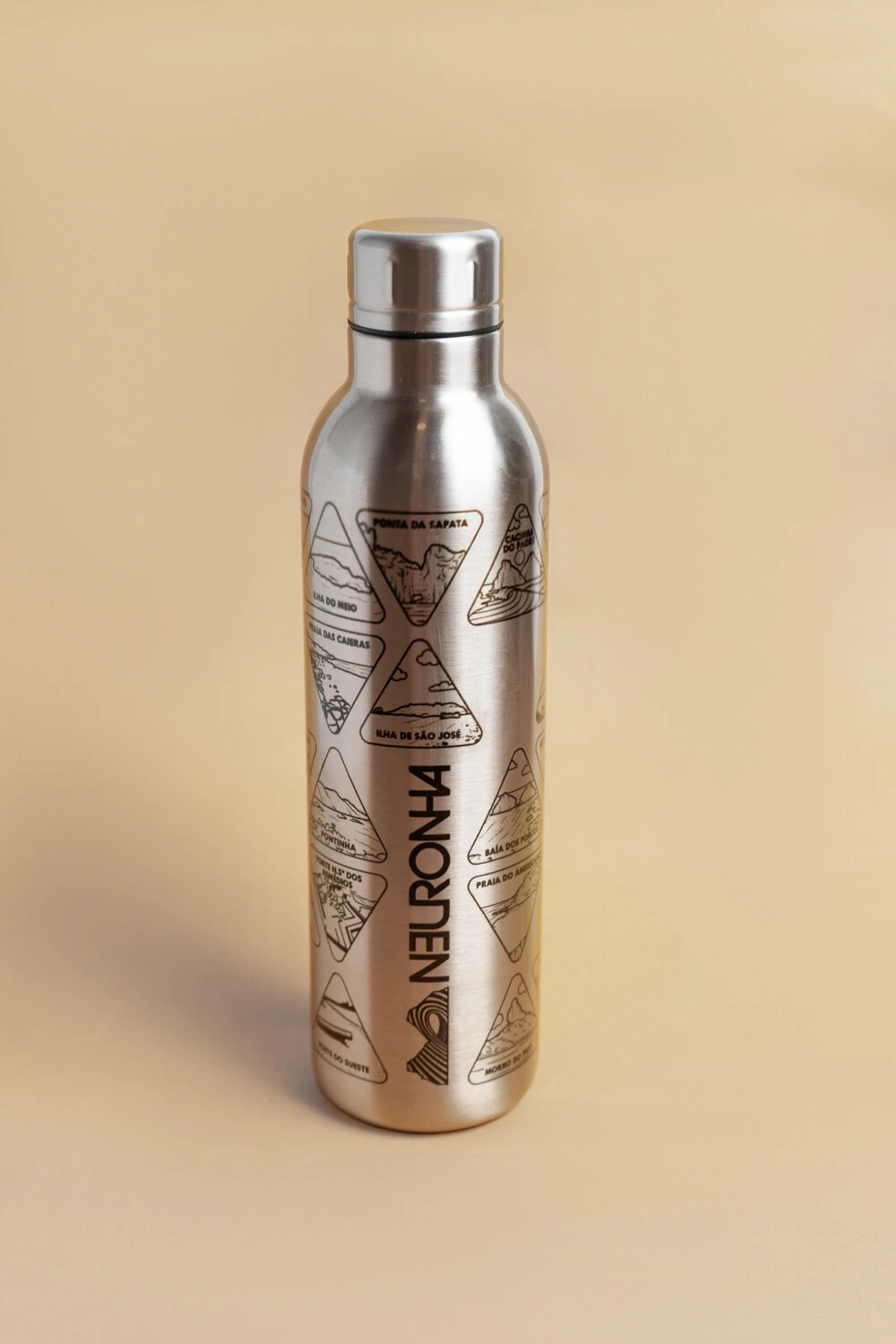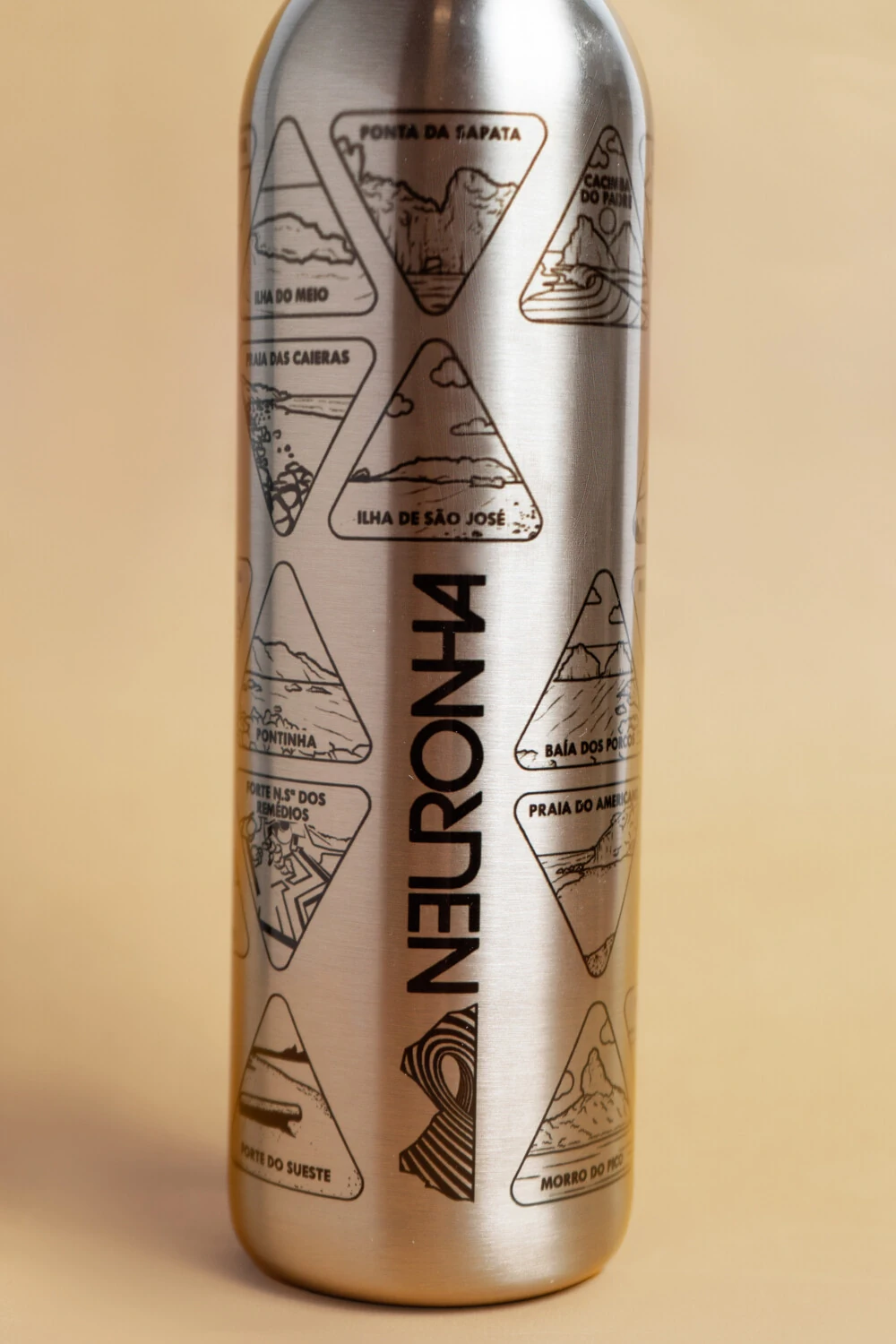 A Garrafa steel Neuronha é de aço inox de alta qualidade e livre de BPA. Possui paredes duplas de aço inoxidável, que funcionam como um isolante térmico, mantendo a temperatura do líquido por mais tempo.
