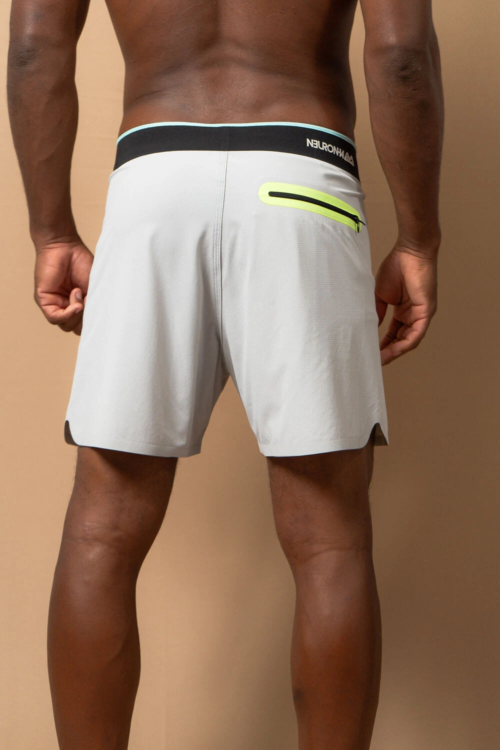 Possuem cós anatômico, fechamento frontal com velcro e cadarço, e bolso posterior discreto com fechamento em zíper. Comprimento acima do joelho, oferecendo mais conforto e flexibilidade nos movimentos.